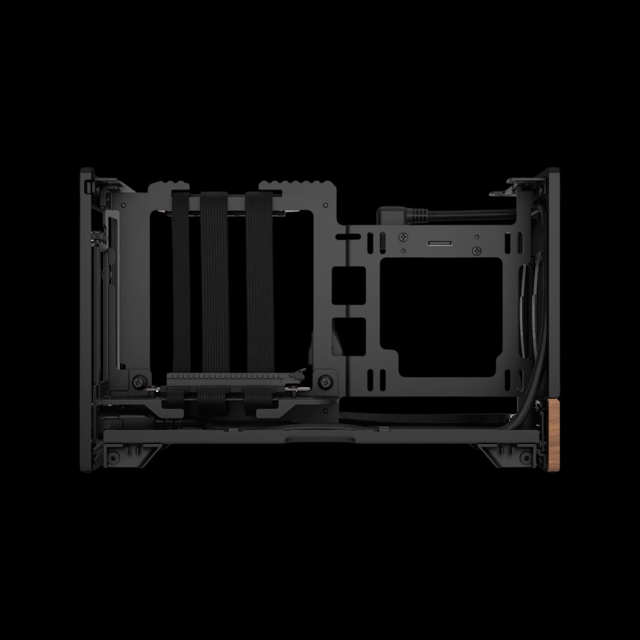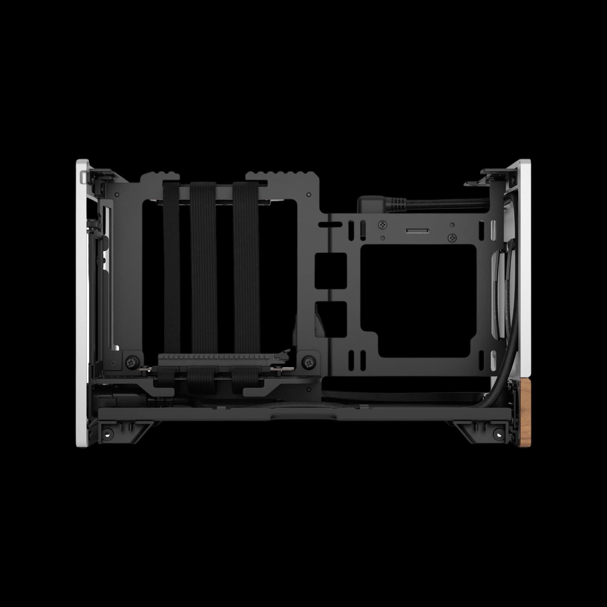 ด้านในเคสถูกออกแบบเพื่อรองรับ PCIe 4.0 riser cable และมี ผนังกลางปรับเลื่อนได้แบบ Stepless ให้คุณปรับเปลี่ยนการจัดวางอุปกรณ์ได้อย่างยืดหยุ่น รองรับ GPU ขนาดใหญ่สูงสุด 322 มม. แม้ในขนาดเคสเพียง 10.4 ลิตร (ไม่รวมขาเคส)